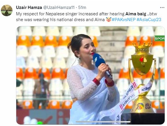 The biggest cricket gala of the season, Asia Cup 2023, has kicked off today in Multan. Nepalese singer Trishala Gurung and Pakistani singer Aima Baig opened the ceremony with their performances. While everyone applauds Nepalese singer, the performance of Aima Baig hasn’t gone great among local fans.